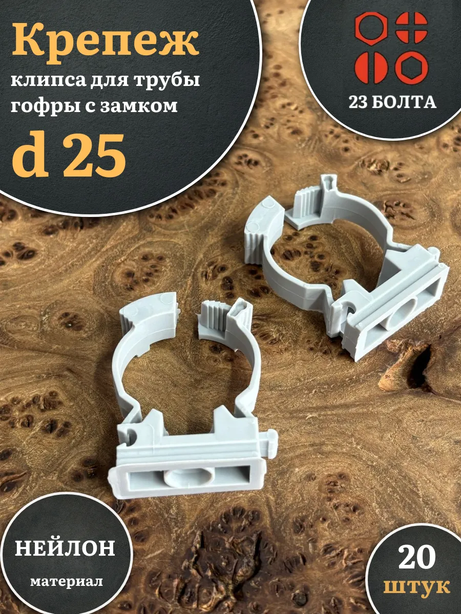 Крепеж клипса для трубы гофры с замком d 25 мм