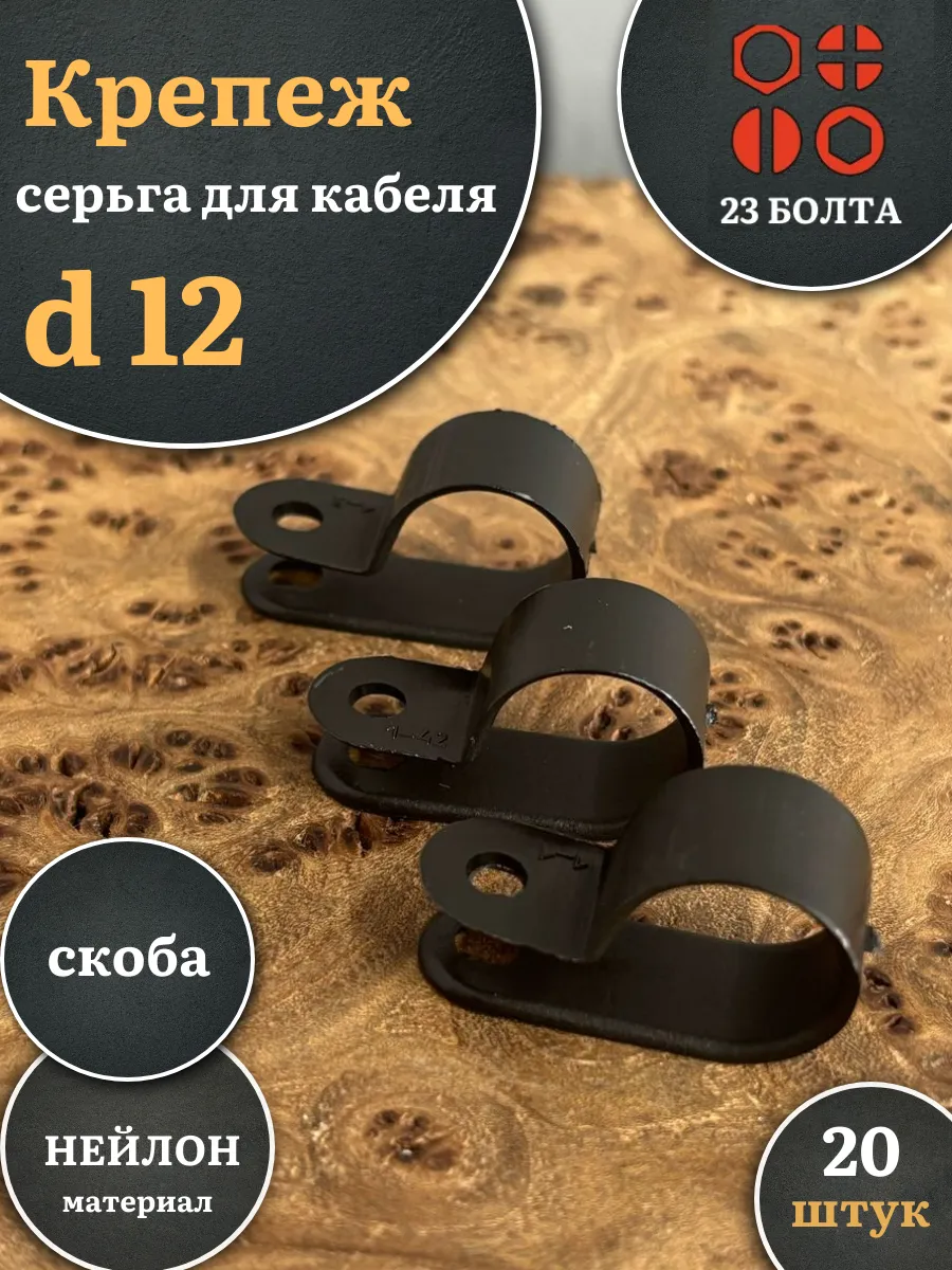 Крепеж серьга для кабеля (скоба) d 12 черная, 20 шт.