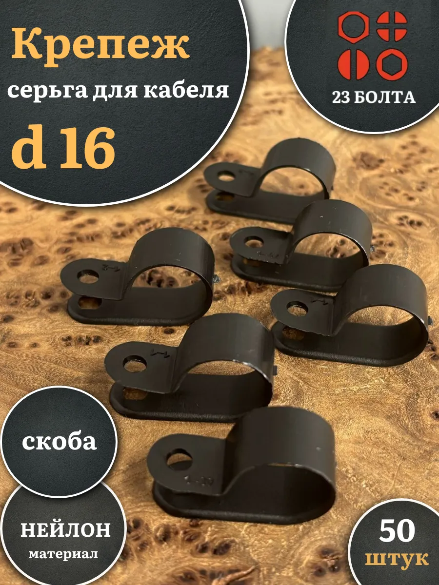 | Крепеж серьга для кабеля (скоба) d 16 черная, 20 шт. | 15-0570ф20 | 1 шт. |