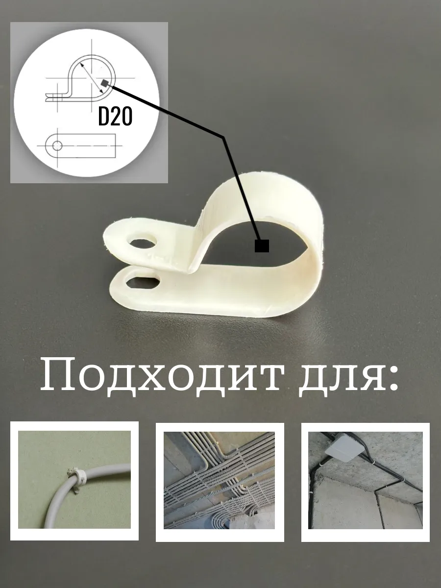 | Крепеж серьга для кабеля (скоба) d 20 белая, 20 шт. | 15-0585ф20 | 1 шт. |