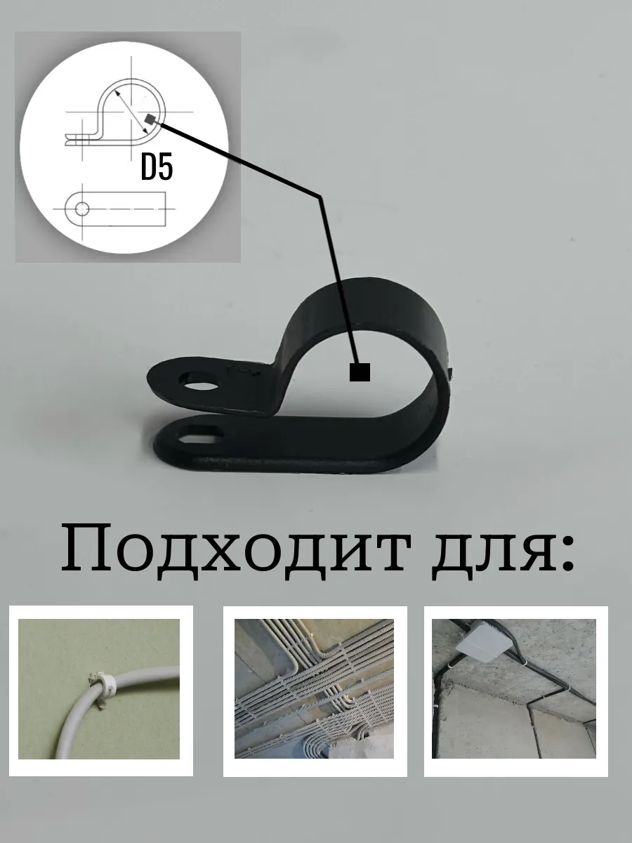 | Крепеж серьга для кабеля (скоба) d 5 черная, 50 шт. | 15-0534ф50 | 1 шт. |