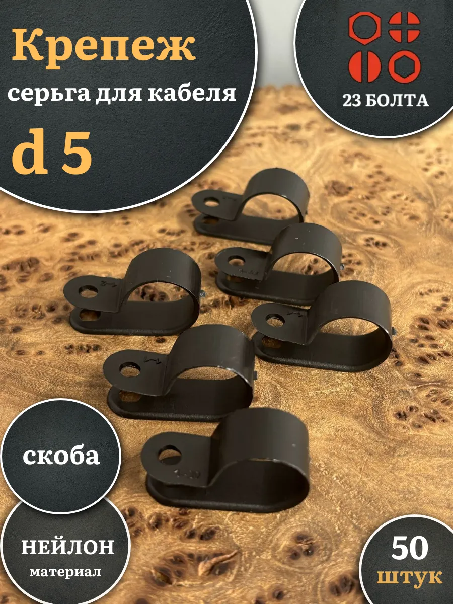 | Крепеж серьга для кабеля (скоба) d 5 черная, 100 шт. | 15-0534ф100 | 1 шт. |