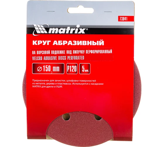 Круг абразивный перфорир. на ворсовой основе под "липучку" 150 мм Р120 5 шт Matrix