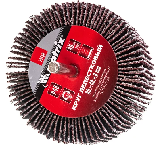 Лепестковый круг для дрели Matrix 74120, 60 х 30 х 6 мм, с зернистостью P 40, является оснасткой для дрелей и прямых шлифовальных машинок с посадочным гнездом 6 мм, рассчитанных на скорость до 8000 об/мин. Круг применяется при грубой обработке древесины, металла и других материалов. Крупнозернистый абразив P 40 эффективно снимает толстые слои краски и ржавчины, зачищает сварные швы, удаляет заусенцы.