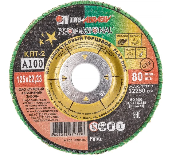 Круг лепестковый конический 125х22 мм A 100 КЛТ2 Луга