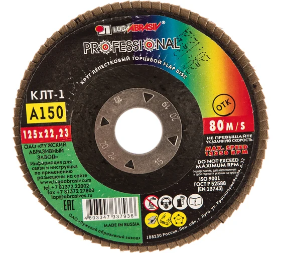 Круг лепестковый торцевой плоский КЛТ1 Луга D91012522140100 предназначен для ручных шлифовальных машин. Применяется для плоского шлифования, обработки кромок и сварных швов деталей и конструкций из различных марок сталей, цветных металлов и древесины. Круг работает тихо, устойчиво, без прижогов, оставляя холодными обработанные поверхности, обеспечивает максимальный съем материала.