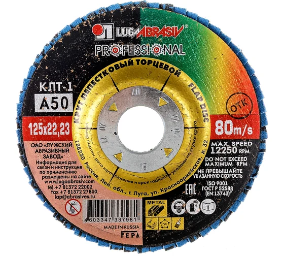 Круг лепестковый торцевой плоский КЛТ1 Луга D91011522140320 предназначен для ручных шлифовальных машин. Применяется для плоского шлифования, обработки кромок и сварных швов деталей и конструкций из различных марок сталей, цветных металлов и древесины. Круг работает тихо, устойчиво, без прижогов, оставляя холодными обработанные поверхности, обеспечивает максимальный съем материала.