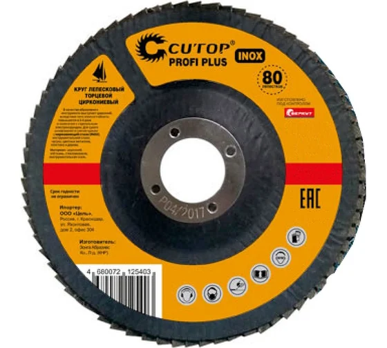 Круг лепестковый торцевой циркониевый Cutop Profi Plus (80 лепестков) 125х22,2 мм Р100 (CUTOP)