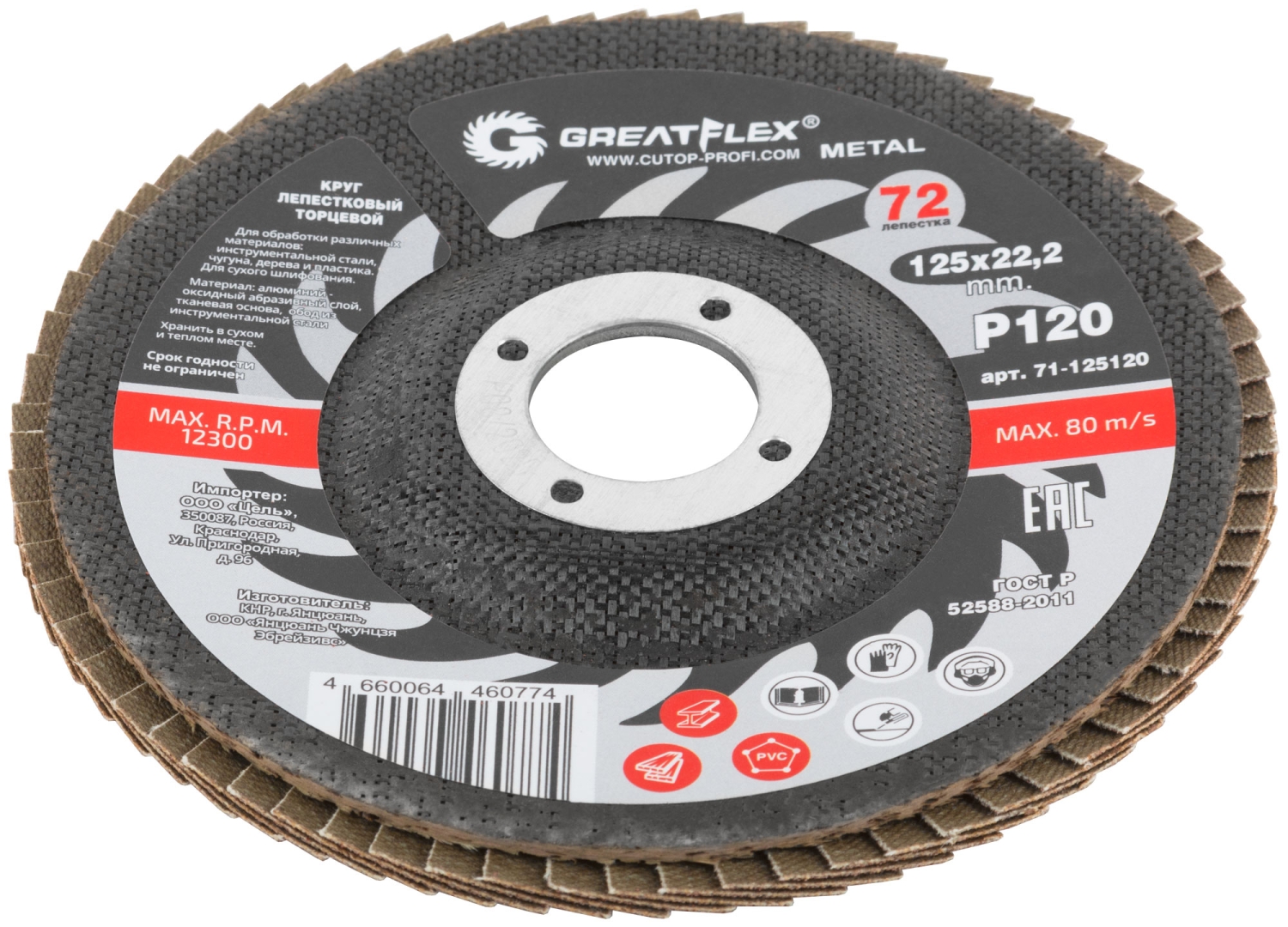 Круг лепестковый торцевой GREATFLEX (72 лепестка) 125х22,2 мм Р120
