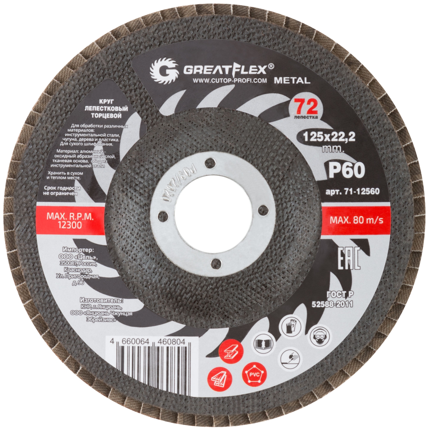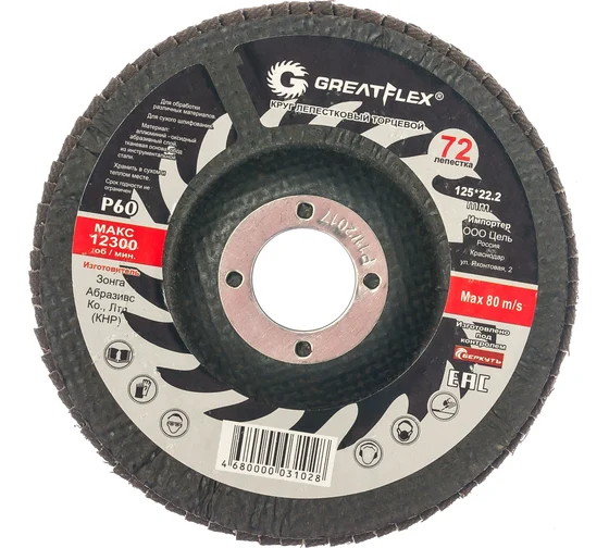Круг лепестковый торцевой GREATFLEX (72 лепестка) 125х22,2 мм Р60