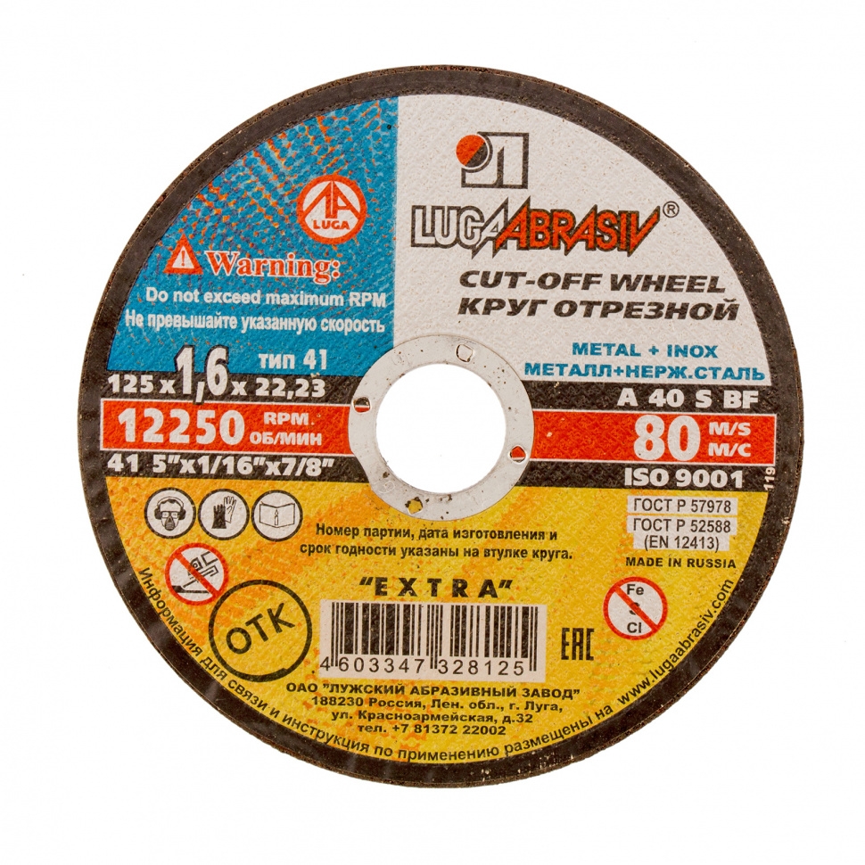 Круг отрезной мет+нерж 125х1,6х22 мм A 40 S BF 80 Луга D11001252216000 1 шт.