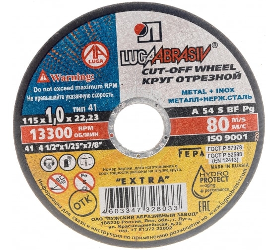Круг отрезной нерж. 125х1,0х22 мм WA 54 S BF 80 Луга D11401252210000 1 шт.