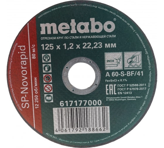 Круг отрезной SP-Novorapid Metabo 617177000 предназначен для ручных резчиков. Применяется для работы с нержавеющей сталью или другими тонкостенными материалами (трубы, листовой металл, профили, проволока и т.д). Круг обладает высокой производительностью и большим ресурсом работы.