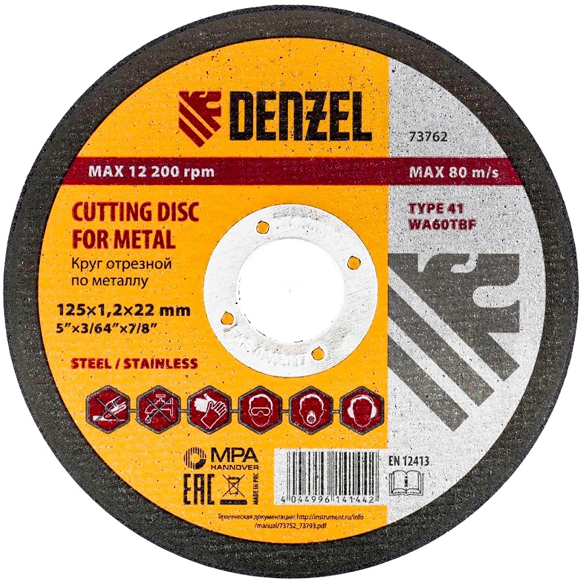 Круг отрезной по металлу 125х1,2х22,2 мм WA60TBF Denzel