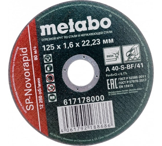 Круг отрезной SP-Novorapid Metabo 617178000 предназначен для ручных резчиков. Применяется для работы с нержавеющей сталью или другими тонкостенными материалами (трубы, листовой металл, профили, проволока и т.д). Круг обладает высокой производительностью и большим ресурсом работы.