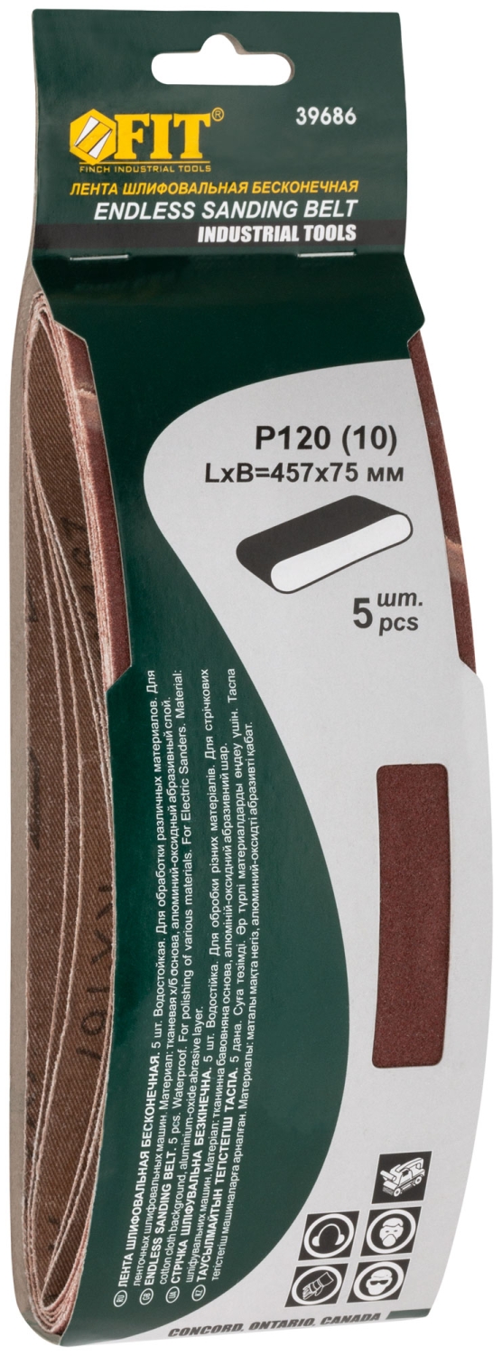 | Ленты шлифовальные бесконечные, водостойкие, тканевая основа, 75 х 457 мм, 5 шт. Р 120 | 39686 | 1 шт. |