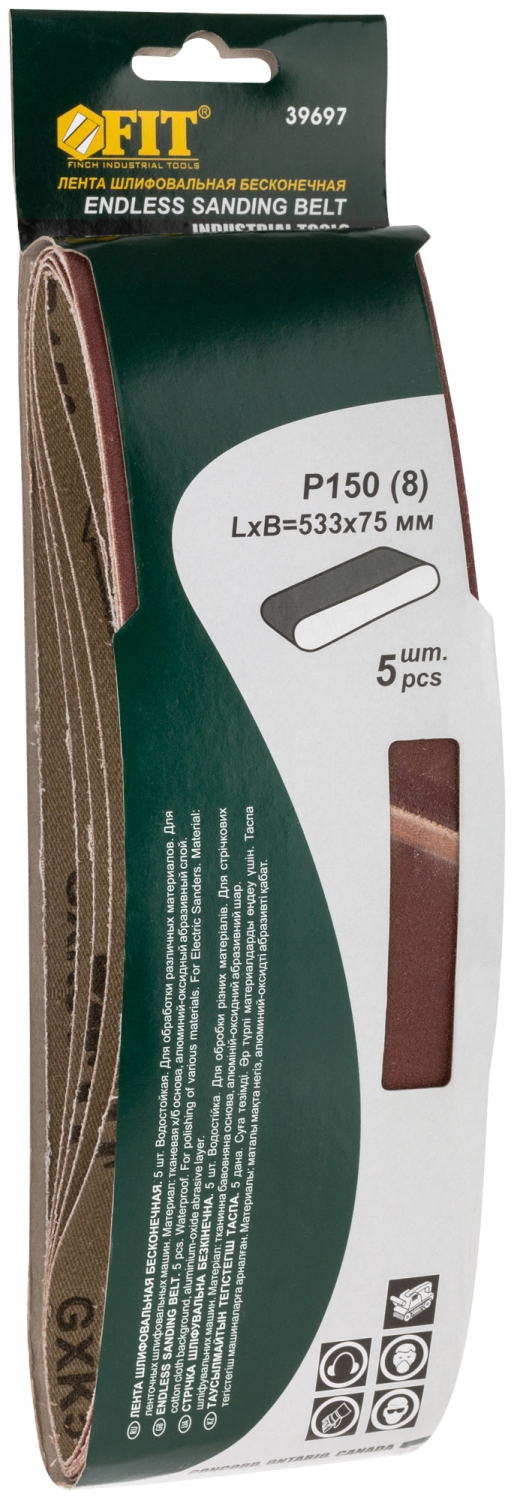 | Ленты шлифовальные бесконечные, водостойкие, тканевая основа, 75 х 533 мм, 5 шт. Р 150 | 39697 | 1 шт. |