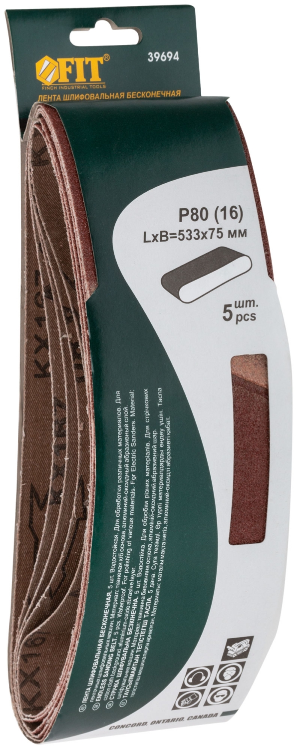 | Ленты шлифовальные бесконечные, водостойкие, тканевая основа, 75 х 533 мм, 5 шт. Р 80 | 39694 | 1 шт. |