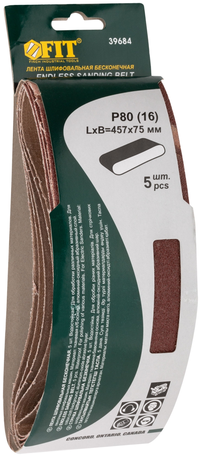| Ленты шлифовальные бесконечные, водостойкие, тканевая основа, 75 х 457 мм, 5 шт. Р 80 | 39684 | 1 шт. |