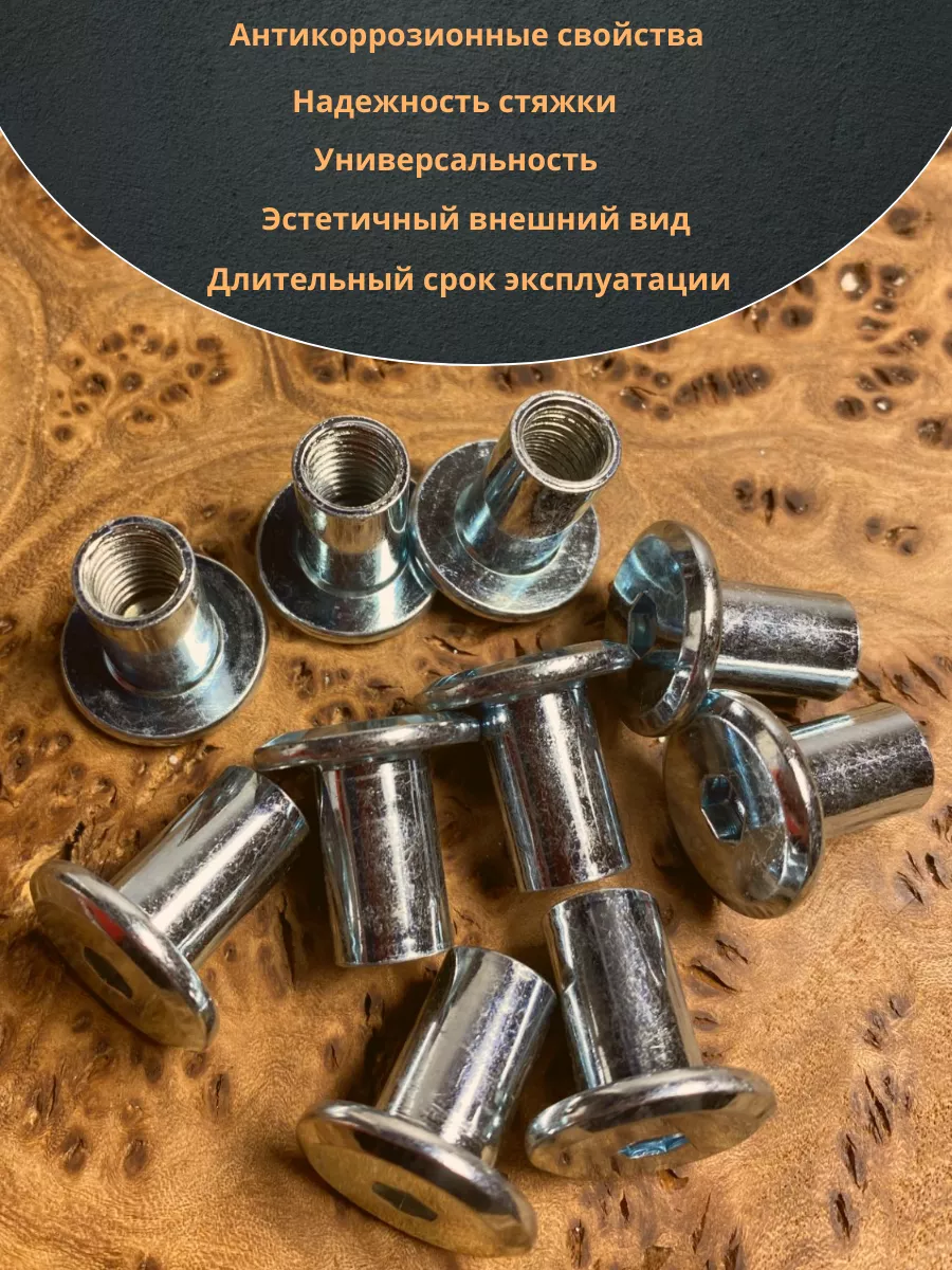 Мебельная гайка Эриксона М5 с полукруглой головкой, 10 шт.