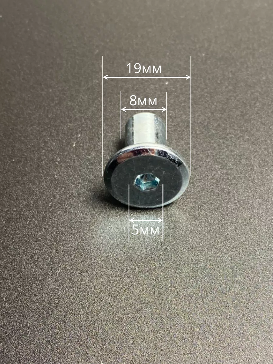 Внутренний шестигранник для многократного затягивания мебельным ключом без повреждения шлица.