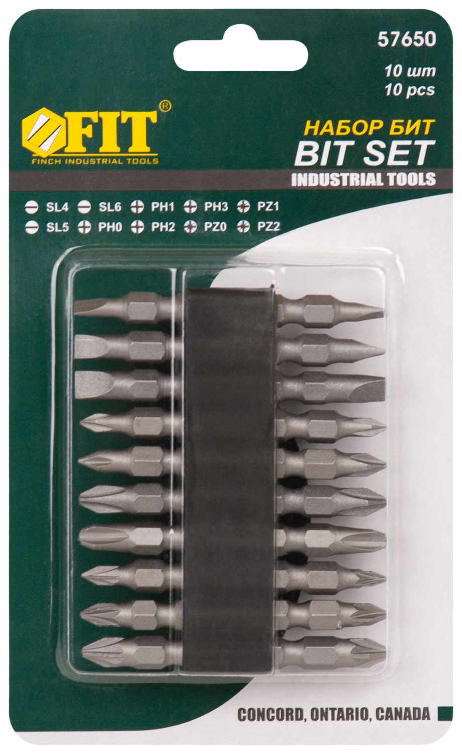 Набор бит 10шт., CrV, 65мм, двухсторонние