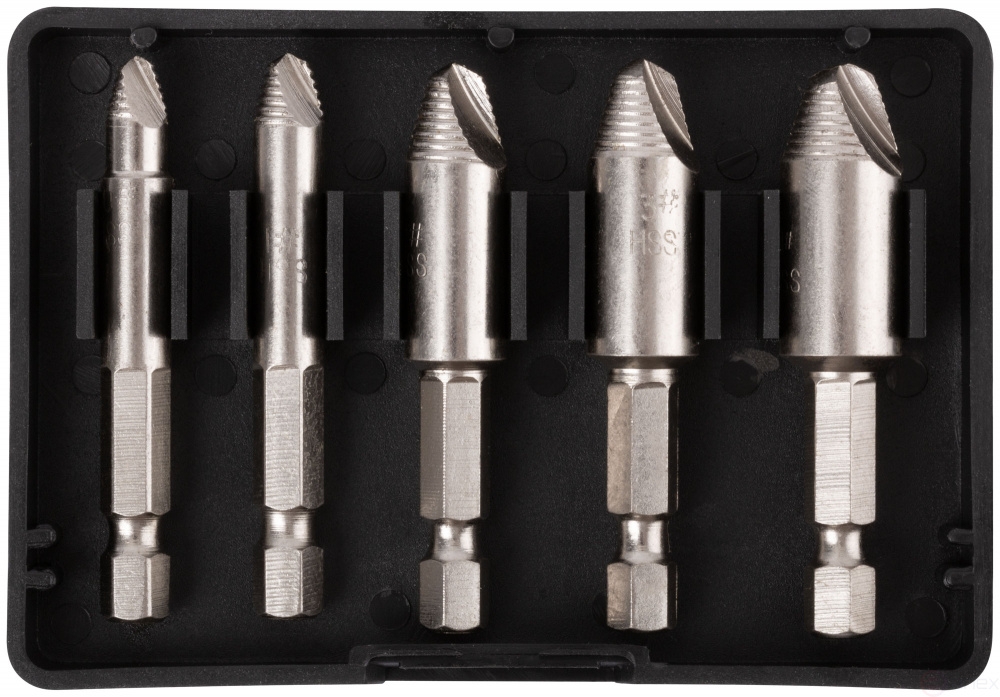 Набор экстракторов для болтов и шпилек усиленный, HSS сталь, Профи 5шт.
