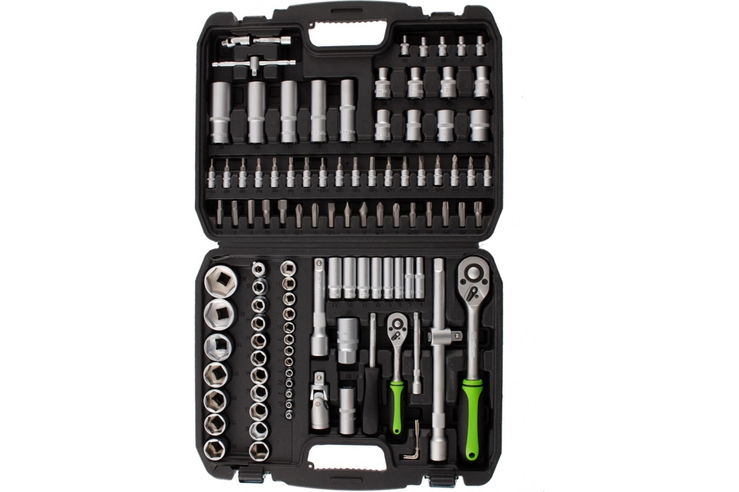 Набор инструмента Сибртех 13498, 1/2 и 1/4 дюйма, состоит из 108 предметов и предназначен для ремонта и обслуживания автомобилей, а также выполнения бытовых работ. Имеющиеся в комплекте насадки рассчитаны на крепеж с различными типами профилей и шлицев, включая HEX и TORX. Набор будет полезен профессиональным мастерам и автолюбителям. Все элементы набора изготовлены из высокопрочной инструментальной стали и выдерживают активное использование.