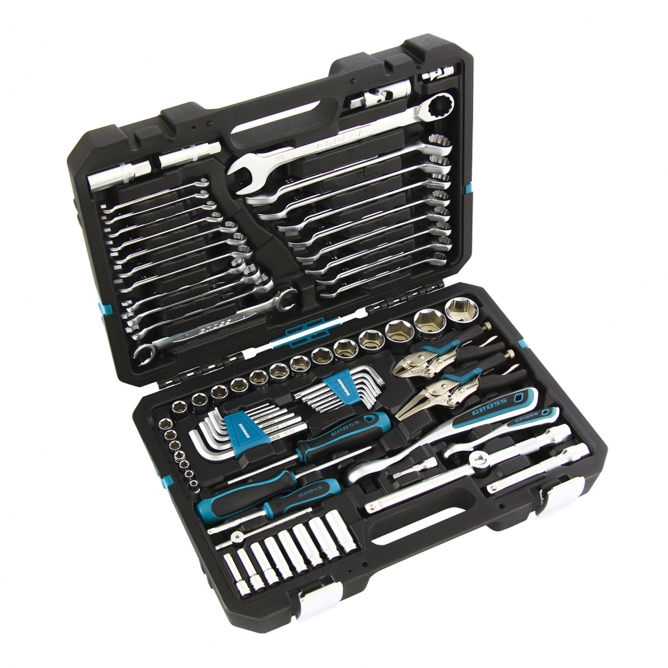 Набор инструментов Gross 78 пред., 120 зубьев, CrV, 1/4, 1/2 14148 предназначен для работ по ремонту и обслуживанию автомобиля, а также для других работ дома, в гараже и на даче. Все предметы изготовлены из хромванадиевой стали, отличаются надежностью, способны выдерживать интенсивные нагрузки. Трещоточный механизм включает 120 зубьев, шаг храпового механизма трещотки - 3 градуса. В комплекте поставляется прочный кейс с продуманной системой фиксации инструментов, что обеспечивает их аккуратное и компактное хранение, транспортировку.