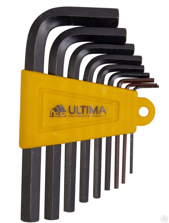 Набор ключей-шестигранников Ultima предназначен для работы с крепежом, оснащенным внутренним шестигранным гнездом. Ключи изготовлены из хромванадиевой стали. В комплектацию набора – 1,5-2-2,5-3-4-5-6-8-10 мм. При работе в труднодоступных местах длинный конец используется как рабочий. Укомплектованы в удобные пластиковые футляры. достоинства инструмента — простота, лёгкость, малый вес;