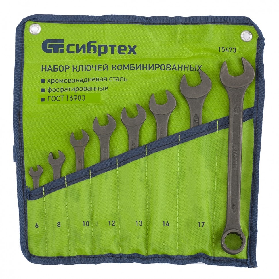 Набор ключей комбинированных 6-19 мм 8 шт CrV фосфатированные ГОСТ16983 Сибртех