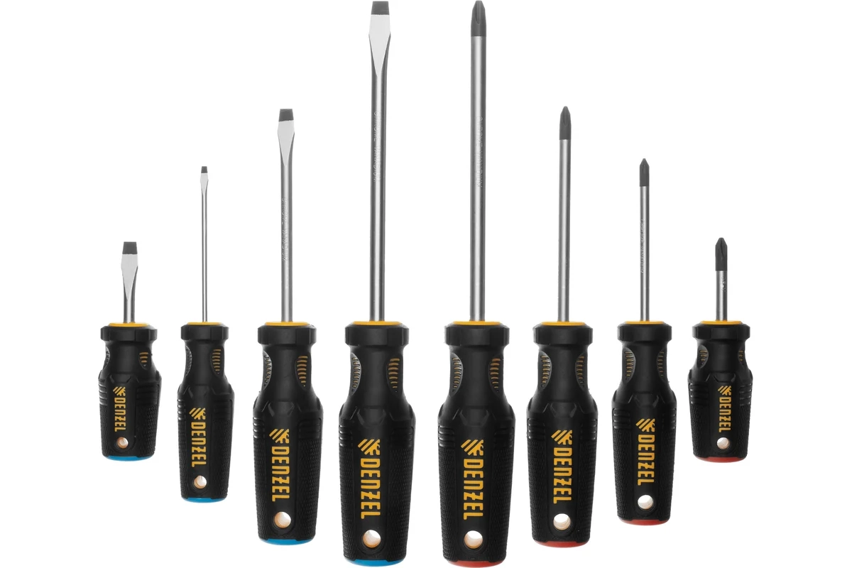 Набор отверток с трехкомпонентными рукоятками CrV 8 предм. Denzel