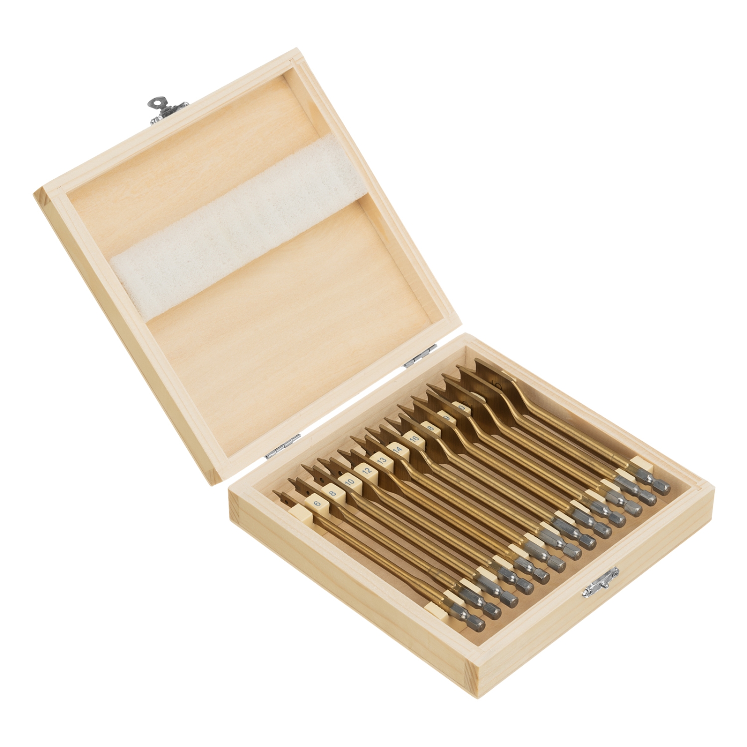 Набор Matrix 70442 состоит из 13 перовых сверл по дереву диаметром 6-8-10-12-13-14-16-18-19-20-22-24-25 мм и поставляется в деревянном кейсе. Позволяет получать сквозные и глухие отверстия в древесине. Сверла устанавливаются на электрические и механические дрели или шуруповерты. Износостойкость — сверла имеют нитридтитановое покрытие, а режущие кромки закалены до необходимой твердости.