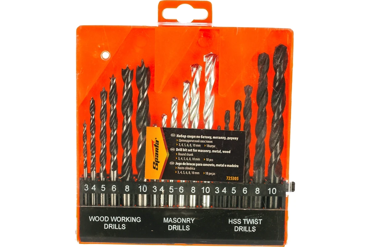 Набор сверл по бетону, металлу, дереву 3-4-5-6-8-10 мм пласт.кейс, цил. хвост. 18 пр. Sparta