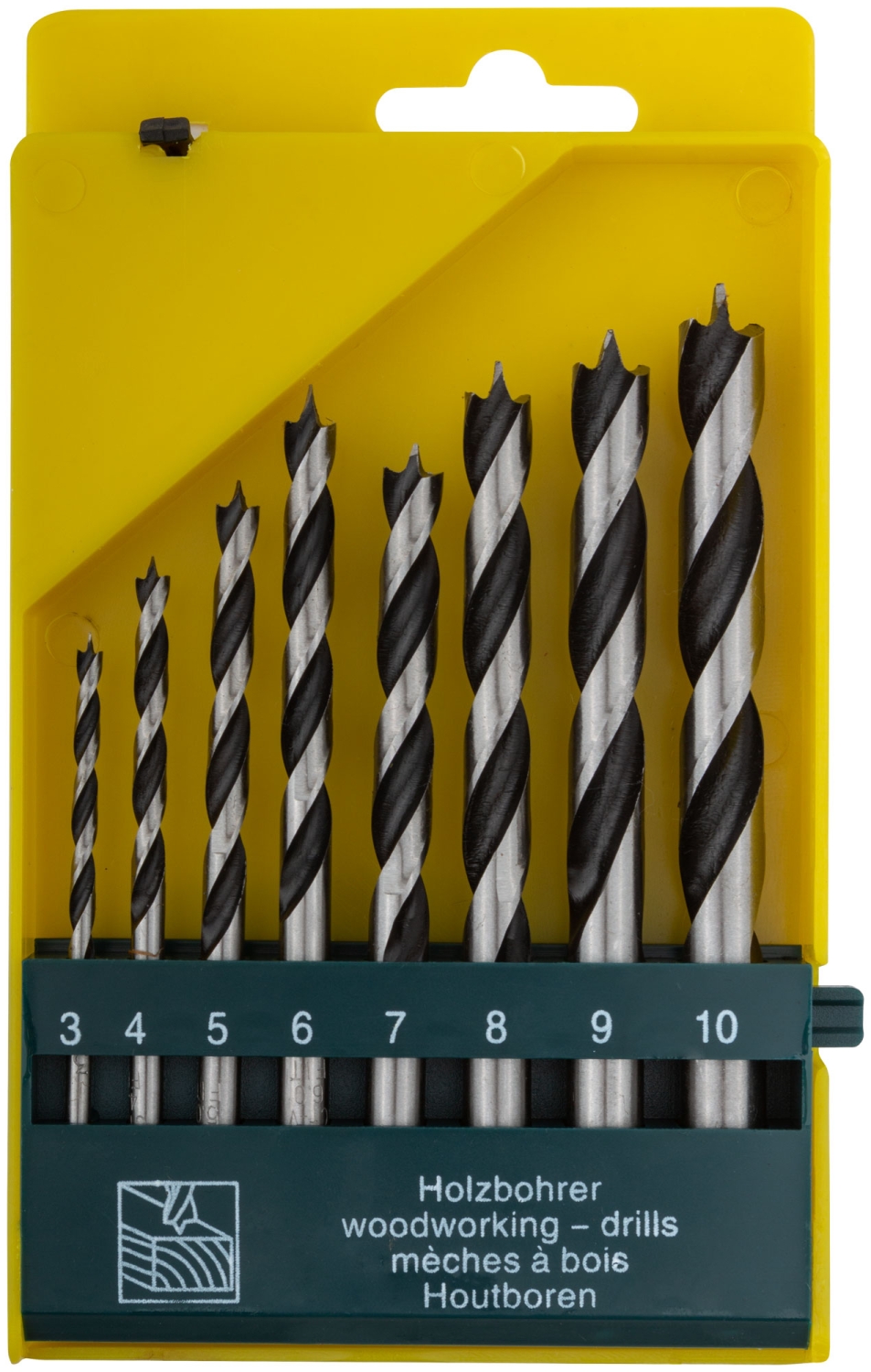 Набор сверл по дереву, crv Профи, пластиковый бокс, 8 шт. (3-4-5-6-7-8-9-10 мм)