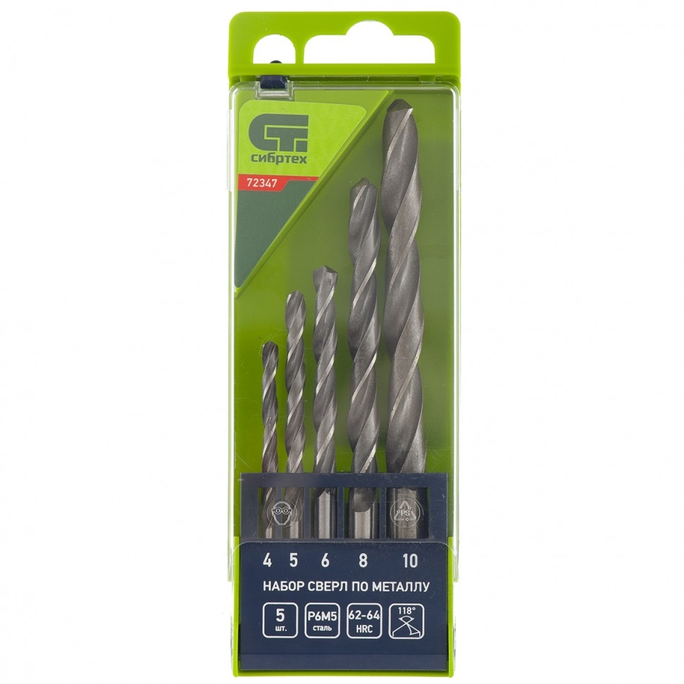 Набор сверл по металлу Сибртех 72347 включает 5 инструментов из стали P6M5, упакованных в пластиковый кейс, и предназначен для получения отверстий диаметром 4-10 мм. Сверла с углом заточки 118 градусов подходят для работы с чугуном, сталью, твердой бронзой. В наборе оснастки самых распространенных размеров, которые будут полезны во время строительных, ремонтных работ, а также пригодятся в быту.