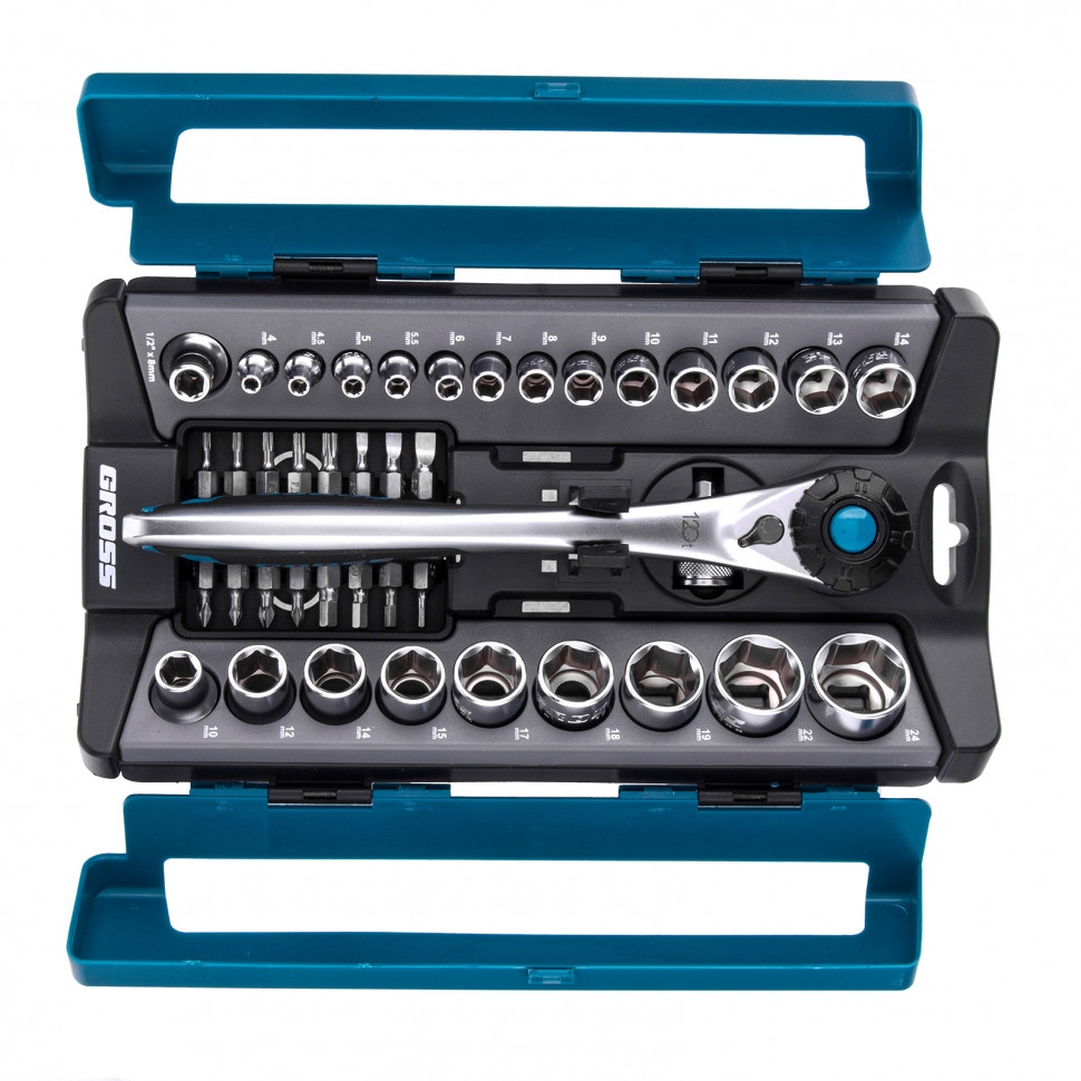 Набор торцевых головок, трещотка 120 зубьев, 41 предм. 1/2, 1/4 CrV Gross