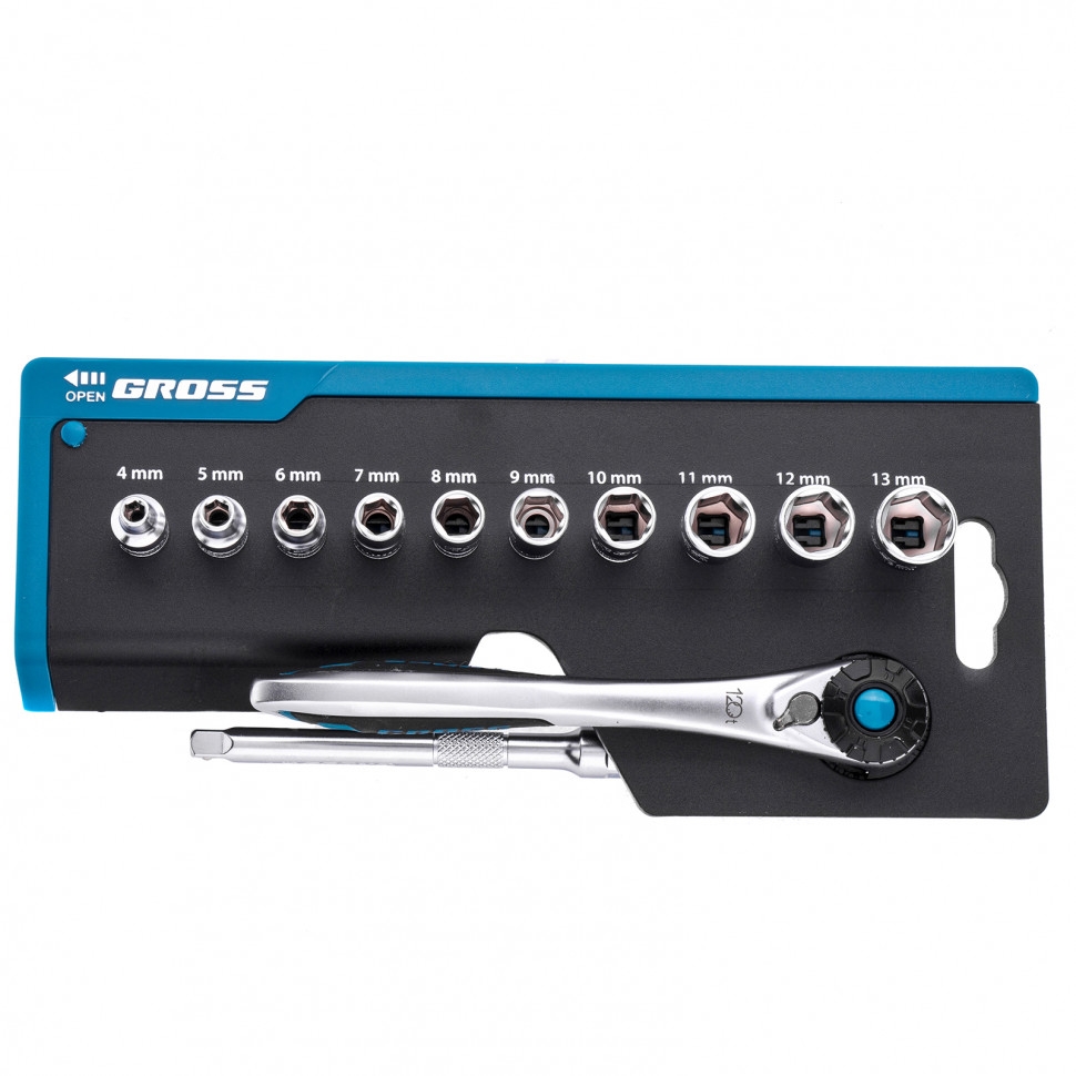 Набор торцевых головок. трещотка 120 зубьев. 12пр. 1/4" CrV Gross