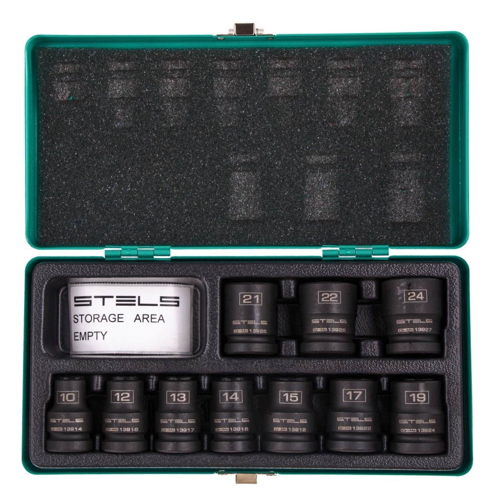 Набор ударных торцевых головок шестигранных 10 шт 1/2 10-24мм Stels