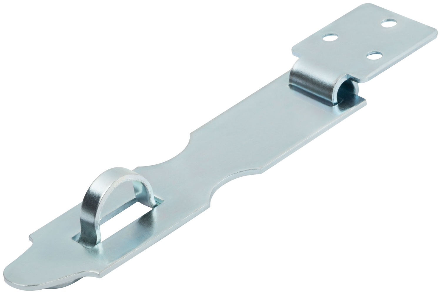 Простая стальная пластина с петлевым механизмом для цепляния замка, покрытая цинком для стойкости к ржавчине и внешним воздействиям. Компактный размер облегчает установку на разные типы дверей.