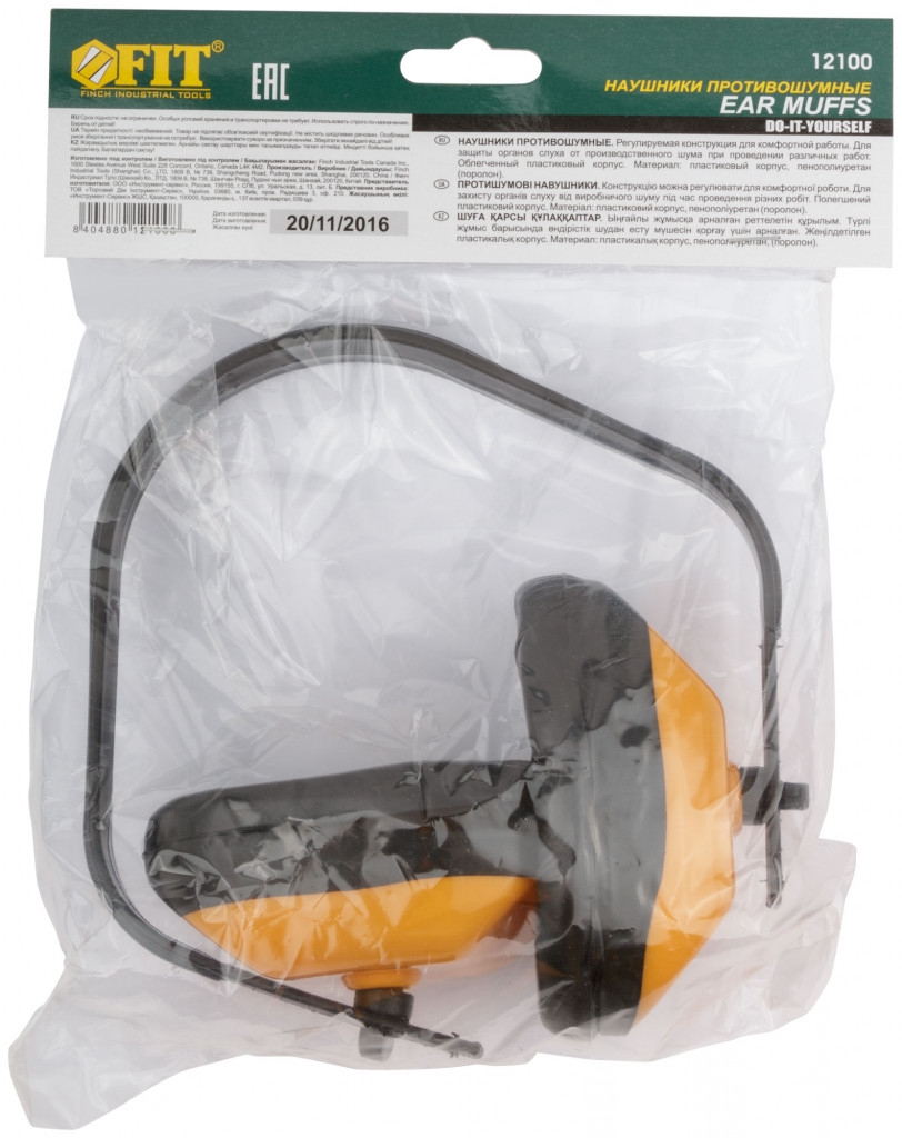 Наушники шумозащитные, регулируемые, облеченные, пластиковый корпус. Ограничение шума на 20 ДБ (NRR). Упаковка: п/э пакет с подвесом.