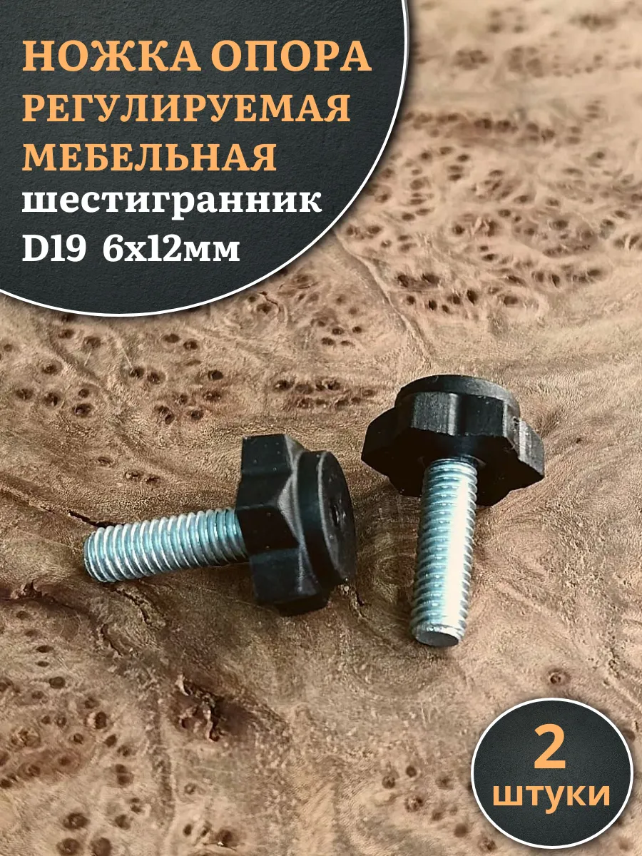 Ножка опора D19 М6х12 регулируемая мебельная под шестигранник 2 шт