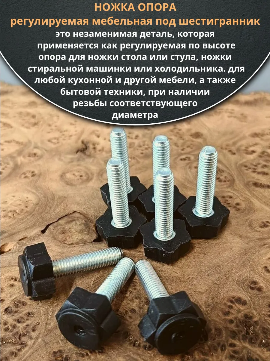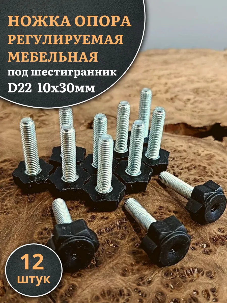 | Ножка опора D22 М10х30 регулируемая мебельная под шестигранник 12 шт | 33-0150ф12 | 1 шт. |