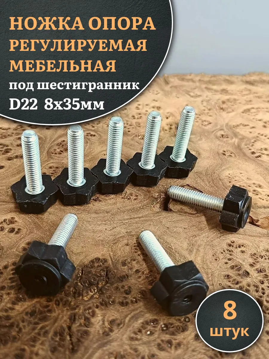 | Ножка опора D22 М8х35 регулируемая мебельная под шестигранник 12 шт | 33-0140ф12 | 1 шт. |