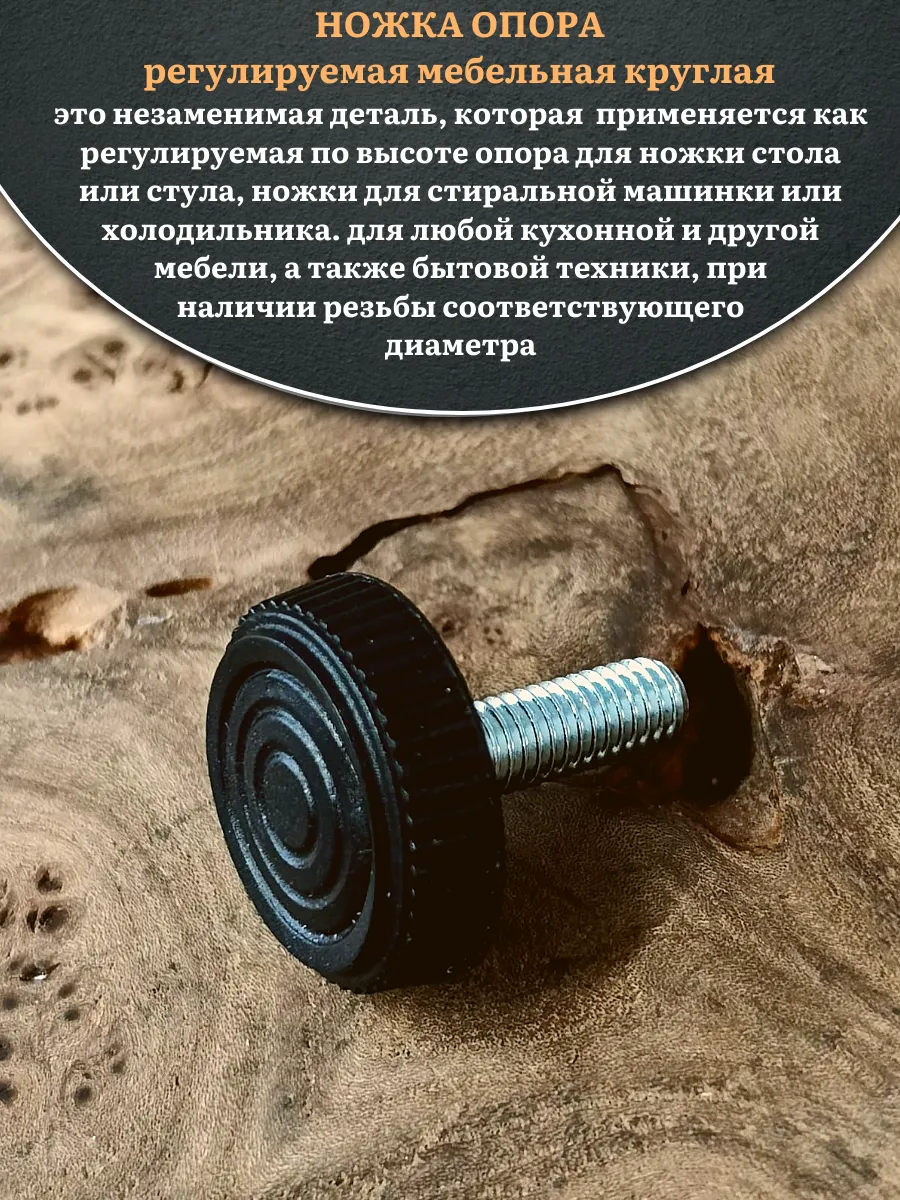 Ножка опора D25 М6х16 регулируемая мебельная круглая 2 шт