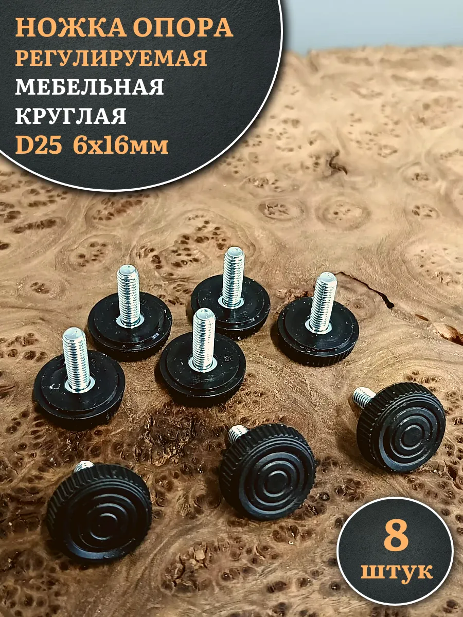 Ножка опора D25 М6х16 регулируемая мебельная круглая 8 шт