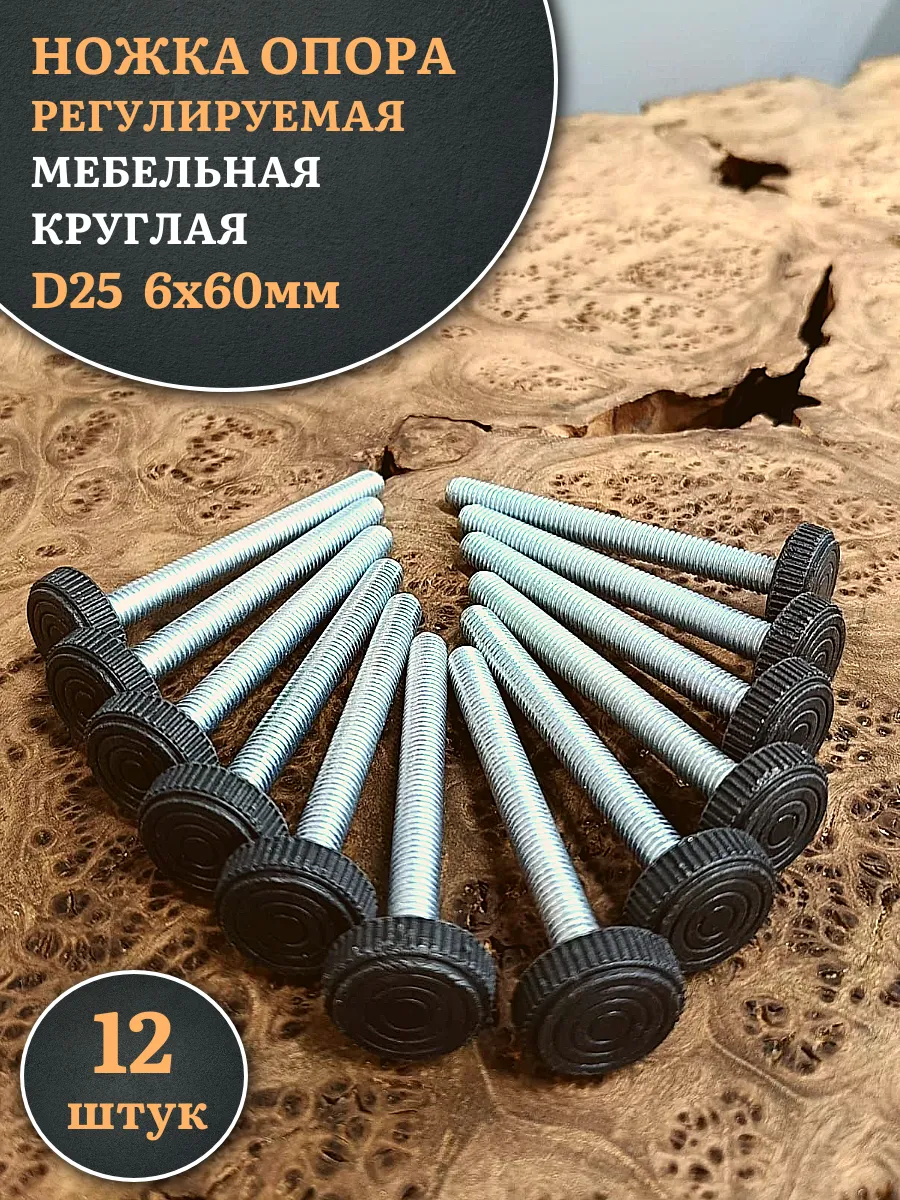 | Ножка опора D25 М6х60 регулируемая мебельная круглая 8 шт | 33-0300ф8 | 1 шт. |