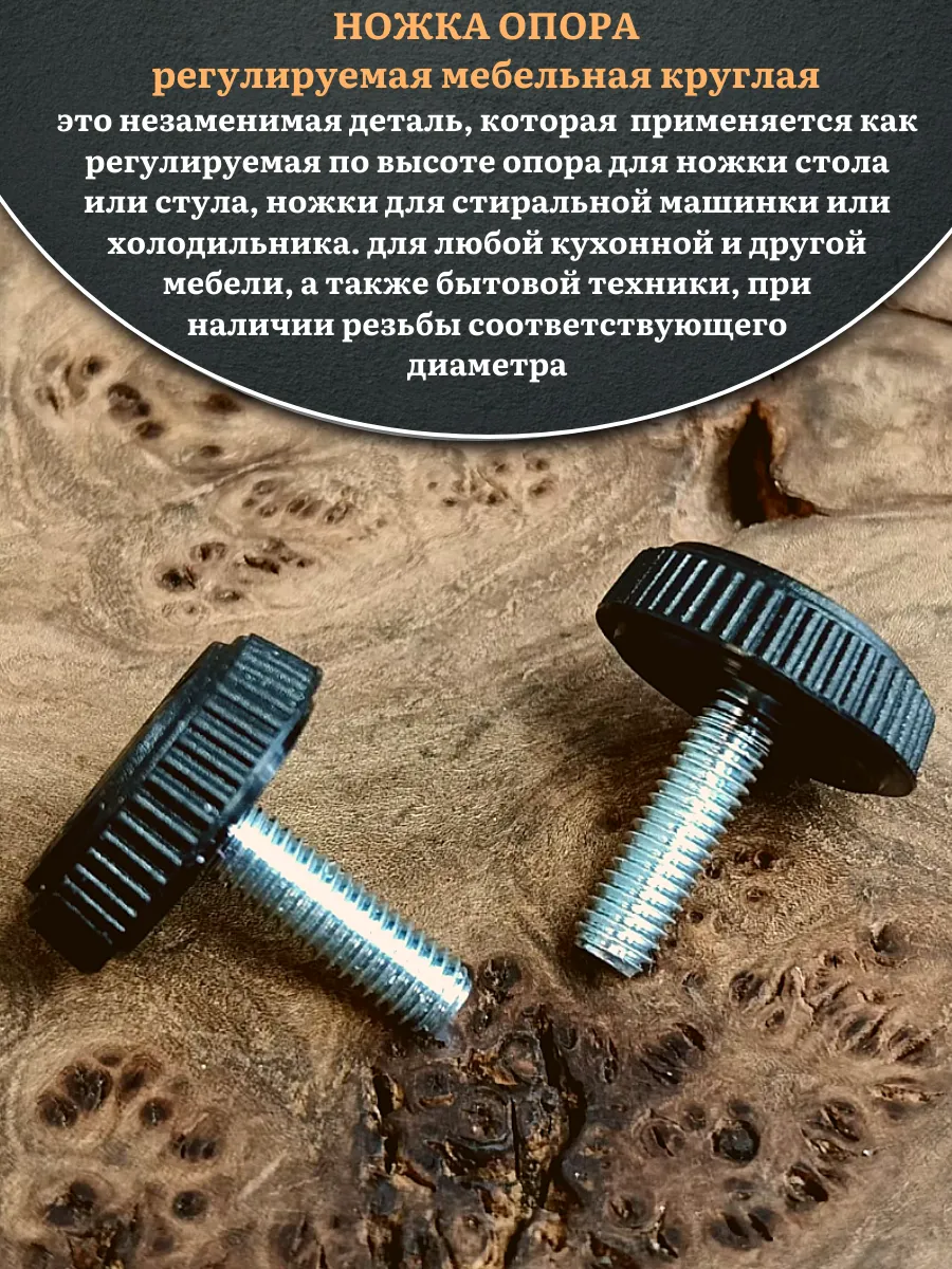 Ножка опора D25 М8х16 регулируемая мебельная круглая 2 шт