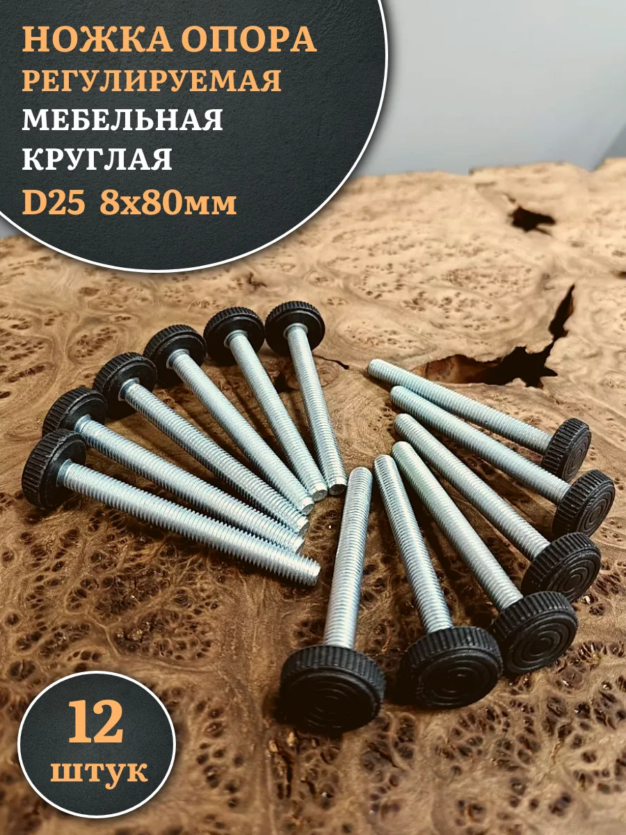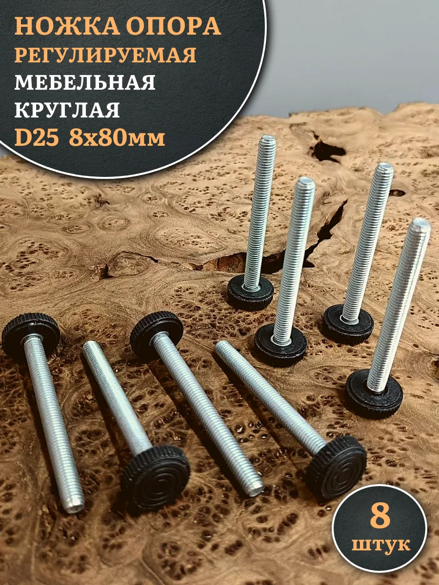 | Ножка опора D25 М8х80 регулируемая мебельная круглая 12 шт | 33-0390ф12 | 1 шт. |