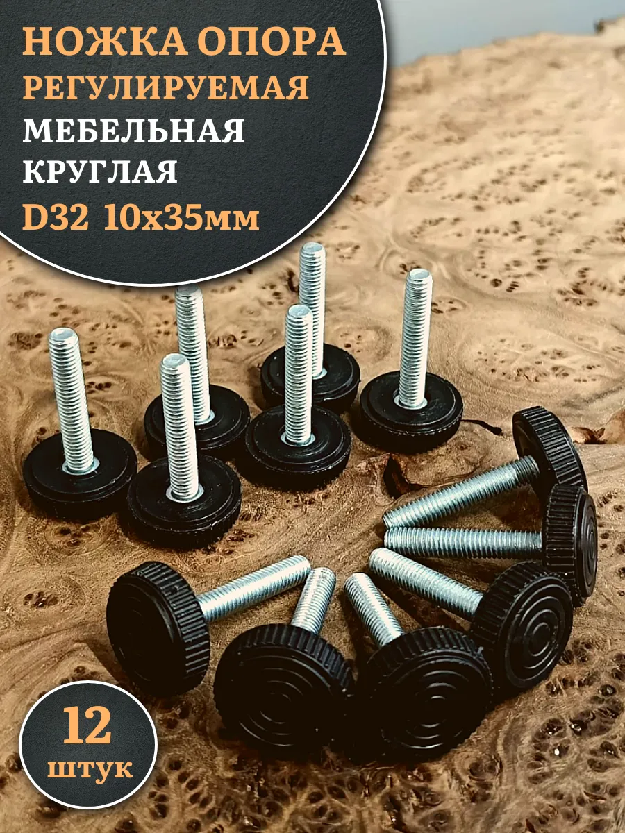 Ножка опора D32 М10х35 регулируемая мебельная круглая 12 шт